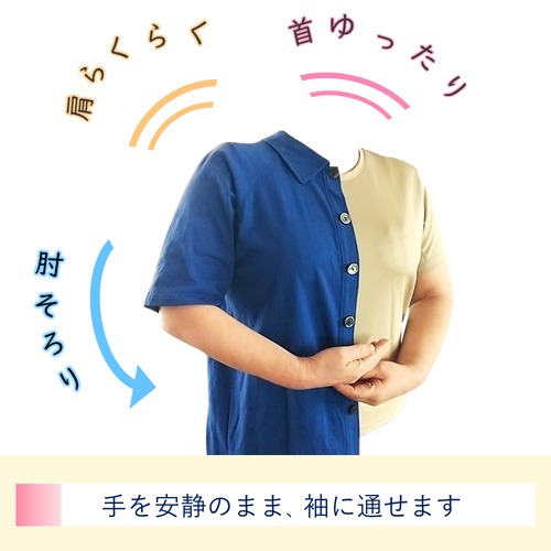 五十肩、首の痛み、関節の痛み、手が痛い、肩が痛い、指が動きづらい、高齢、骨折、脳卒中、片麻痺、拘縮、リウマチ、パーキンソン、認知症、着衣失行などの悩みがあり、着替えを簡単にしたい方。